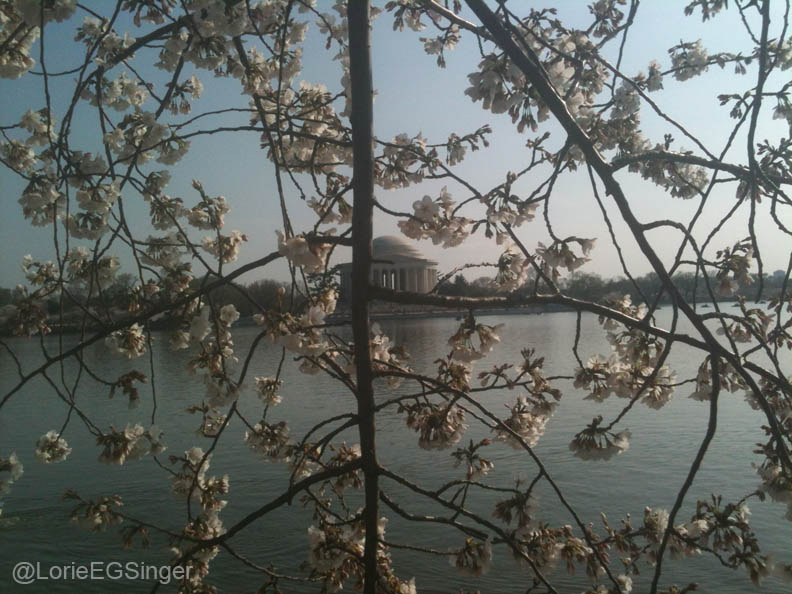 Over the weekend my family made the trip into Washington, D.C. to see the famous cherry blossoms. They really are beautiful, and I highly recommend making the trip to seem them (a word to the wise, early mornings and later afternoons are much less crowded – you can actually see the trees through the people then!). We, of course, were good citizens and took lots of pictures. Some of them are still in the camera, but I did take a few shots with my cell phone. Looking at the pictures earlier I had an idea for today’s story challenge…